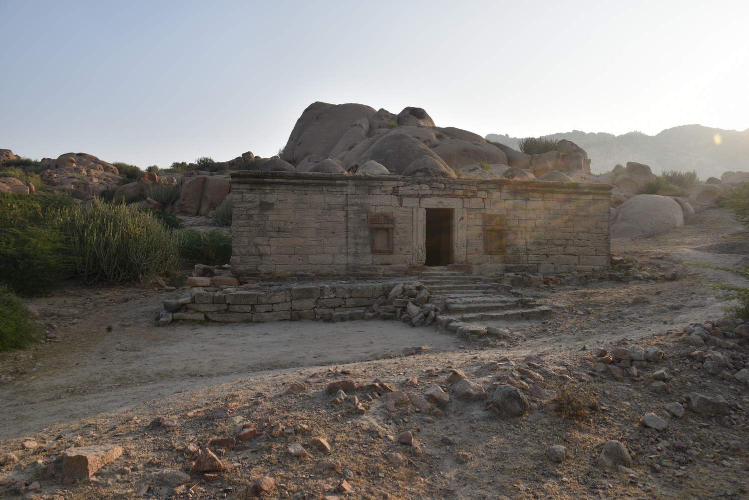 All the stone used in the temple is kanjur and red sandstone, which are not available locally. However, the stone used in the platform and the attached compound wall is local sand stone or granite of red tint.