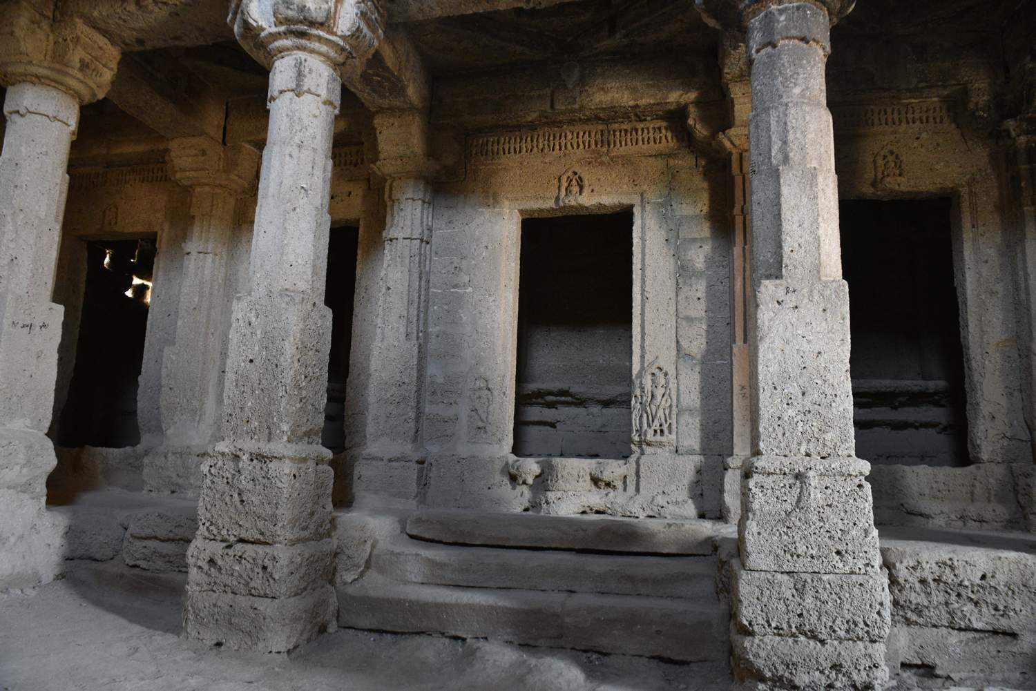 Temple No. 2: The temple No.II it is the largest of the Bodhesar group. It stands on a platform about a metre high and 120 wide on the front side. This temple is a centrally planned structure with nave and a square aisle around it. The Nave is colonnaded with 4 columns on each side and roofed with corbelled low dome of the shape of an inverted bowl supported on octagonal base of beams resting on eight columns.