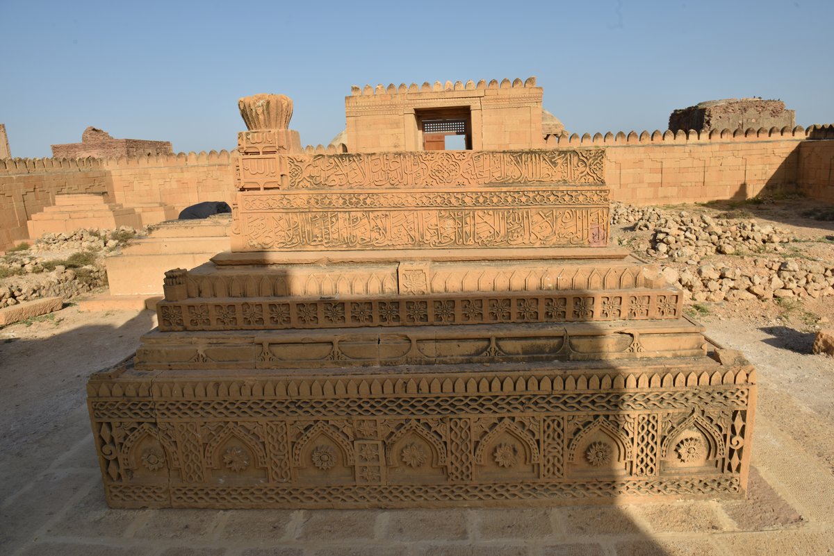 According to the Arabic inscription preserved over the eastern entrance of the enclosure, the foundation of the building was laid in Jamadi-al-Awwal, 895 A.H/A.D. 1490 and the name recorded is Khan al Azam Miyan Mubarak Khan, son of Sultan Nizamuddin Shah. Mubarak was the adopted son of the Sultan, his real name being Darya Khan. The second inscription over the southern entrance gives the full genealogy of Sultan Nizamuddin and speaks of Darya Khan's victory over the Mughals i.e. the Arghuns, and names his son Ahmad. It seems that the son completed the tomb after the death of the father Darya Khan in A.D. 1519.