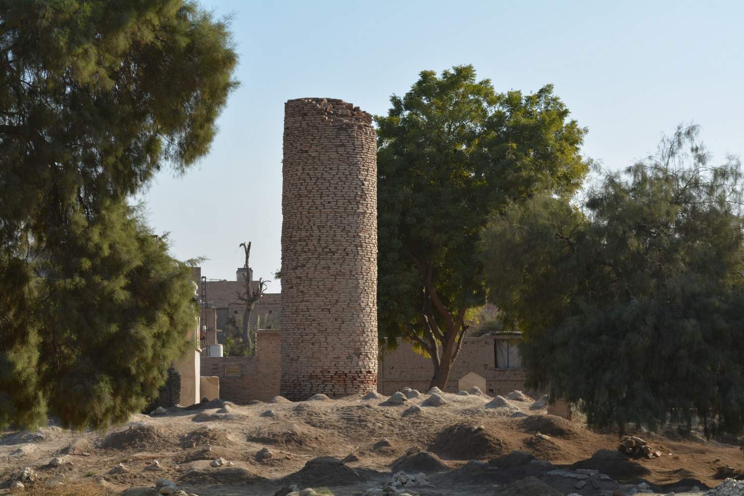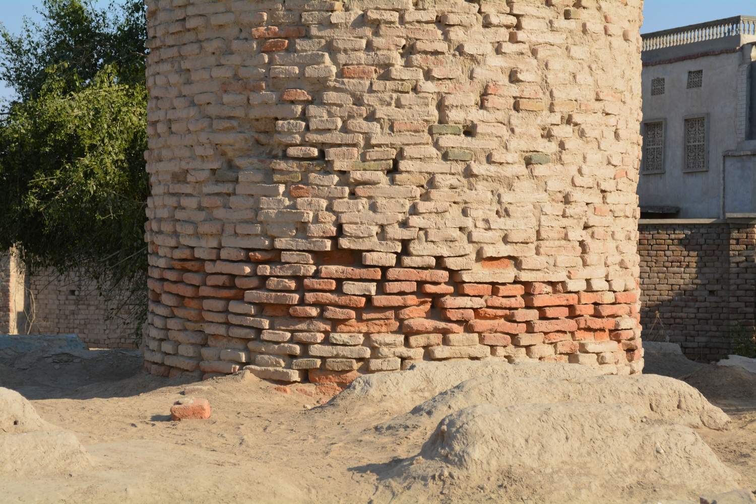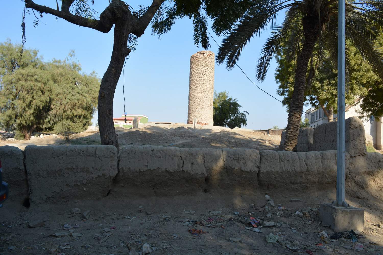 Thul Peer is located in Piryaloi village, Taluka Kingri, District Khairpur. The Thul is cylindrical in shape and is built with burnt bricks, mud is used as mortar. Its height is 27' 3" and its dia is 8' 9". The size of the burnt bricks is 1'x6"x 2". There are two opinions regarding this Thul, some regard them to be Buddhists Stupa and some connect them to be watch towers of British period. Inside the cylindrical shape structure is filled with mud and has no opening, nor is there any staircase leading upwards. Until this Thul is excavated scientifically, its exact chronological context cannot be determined. Presently there is a graveyard around the stupa and is enclosed partially with mud wall, and rest is burnt brick wall with entrance gate.