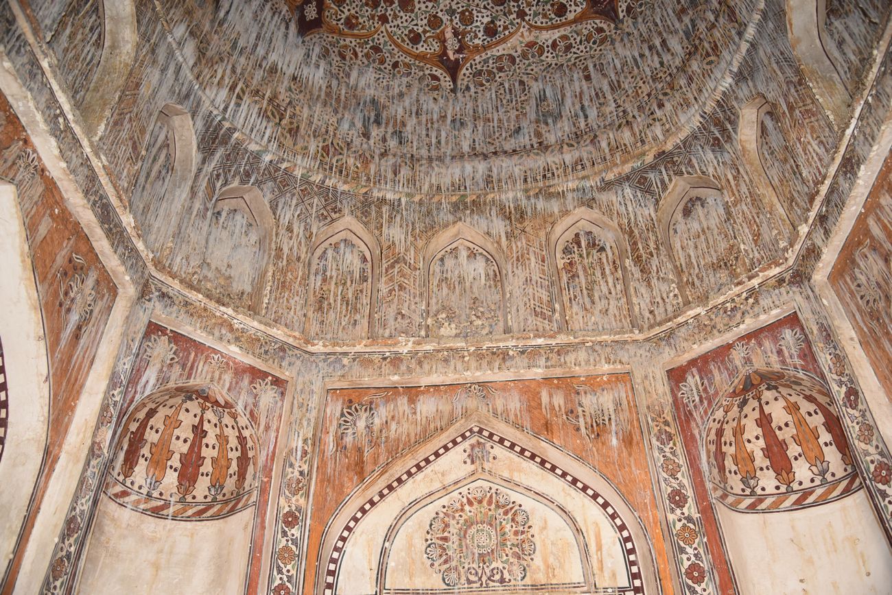 The tomb is square in shape, its dimensions are 18'-0" x 18'-0" (exterior) and 11'-9" x 11'-9" (interior), the total covered area of the tomb is 324 sq.ft (30.099 sq.m). The main entrance faces to the south. Kalhora Period in Taluka Johi District Dadu.