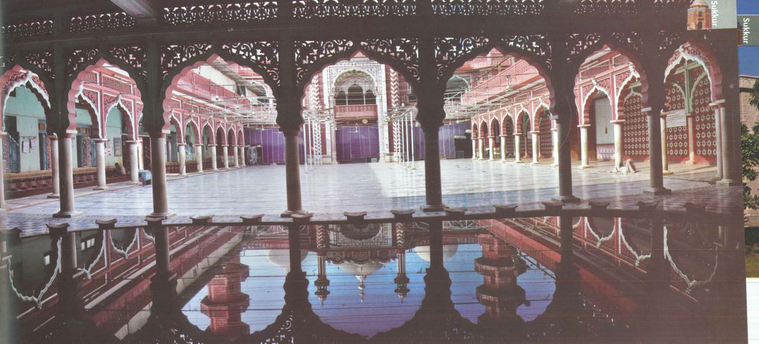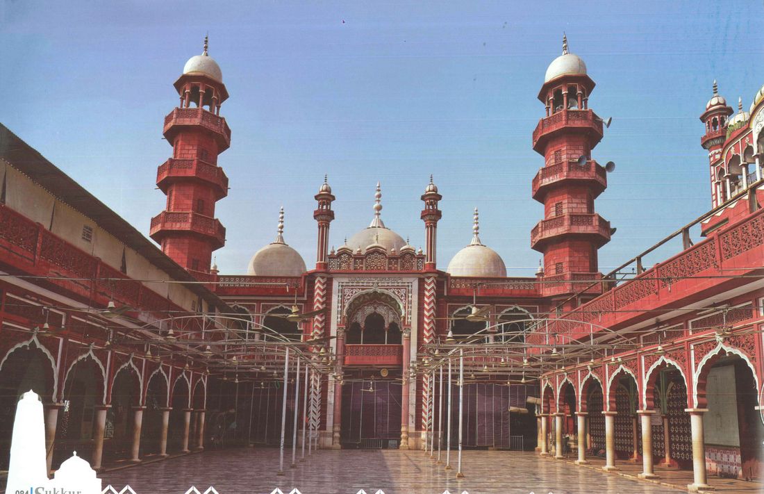 The Jamia Mosque Sukkur on Bunder road is city's main mosque with largest capacity for the faithful to offer prayers at a time. According to a rough assessment, that as many as one lac people can offer prayers at a time