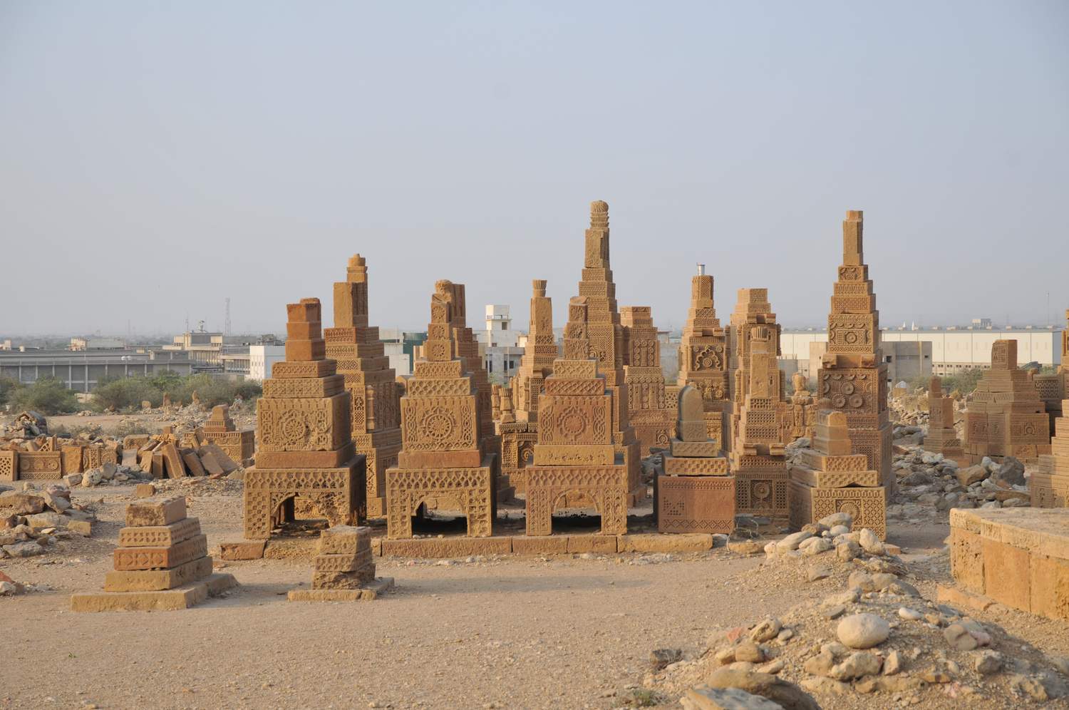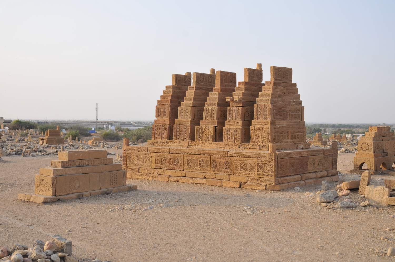 The Chaukandi tombs form an early Islamic cemetery situated 29 km (18 mi) east of Karachi, close to the N-5 National Highway near Landhi Town in Pakistan. The tombs are remarkable for their elaborate sandstone carvings.