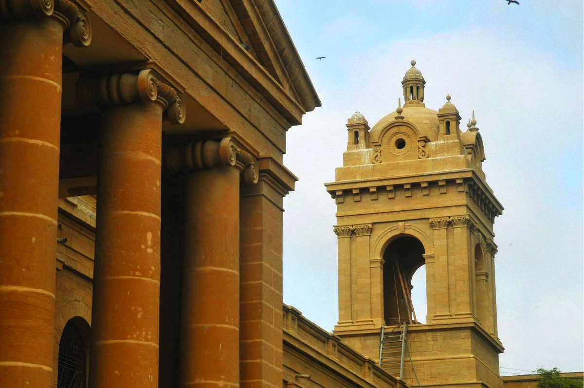 Even in its current state - with paint coming off its walls, shattered windowpanes, grilles with interesting metalwork lying messily on the floor - the structure is a picture of art. Yes, there is a bookstore on the right side of the entrance which doesn't exactly gel with the architectural integrity of the institution, but at how many places in Karachi can you see an impressive portico supported by giant columns, and an iron staircase rising from the vestibule welcoming people into its (class)rooms? As for the dilapidated condition, worry not, at least for now. Repair work is on.