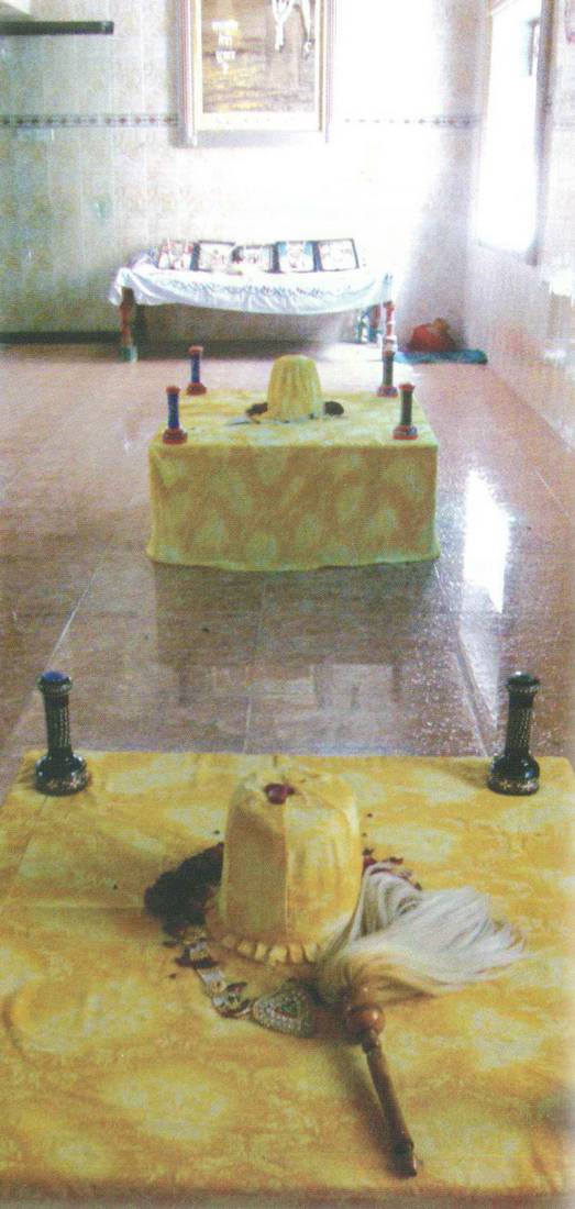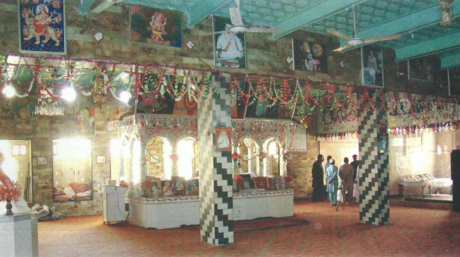 The interior walls of the temple are decorated with the portraits of prominent followers of this temple, who are no more in this world now. The temple houses two Samadhis of religious leaders of their times namely Baba GharibDas (born on 1931 at Gharhi Tegho and died in 1975 at Jalgan, India) and Baba Gurdas Ram. On every 1st of May annual mela is observed here.