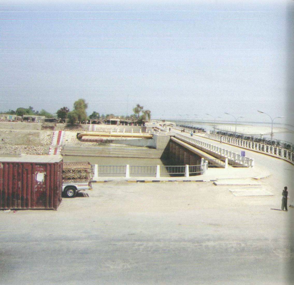 At the time of its construction it has maximum design discharge of 1.2 million cubic feet per second (34,000 m/s). It is a gate-controlled weir type barrage with a navigation lock. The barrage has 64 bays, each 60 feet (18 m) wide. The maximum flood level height of Guddu barrage is 26 feet (8 m). It controls irrigation supplies to 2.9 million acres (12,000 km) of agricultural lands in the Jacobabad, Larkana and Sukkur districts of Sindh and the Naseerabad district of Balochistan. The cost of the project was 478.8 million rupees. It feeds Ghotki Feeder, Begari Feeder, Desert and Pat Feeder canals.
