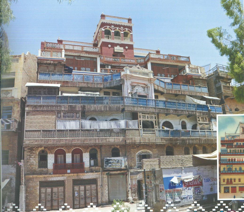 Kanayalal, wealthy Hindu merchant built this multi-storied building on the left bank of the river, soon after the opening of Sukkur Barrage. Each floor has a balcony with elegant wood work.