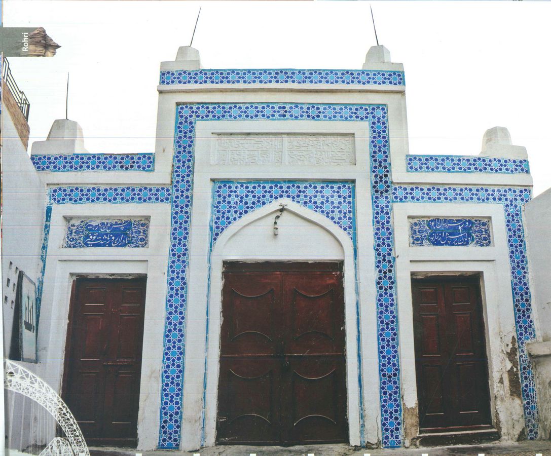 Narrow stairs, just at the corner of Kanaya Lal Cottage, leads to the Rohri's Takar Muhallah and Qureshi Parra, where a single domed an ancient mosque built in 1120 AH is located. The mosque has been by and large renovated by the local communities. Its architectural outlook greatly resembles with the Ali Asmani Shah Mosque behind the Darbar of Wassam Ram.
