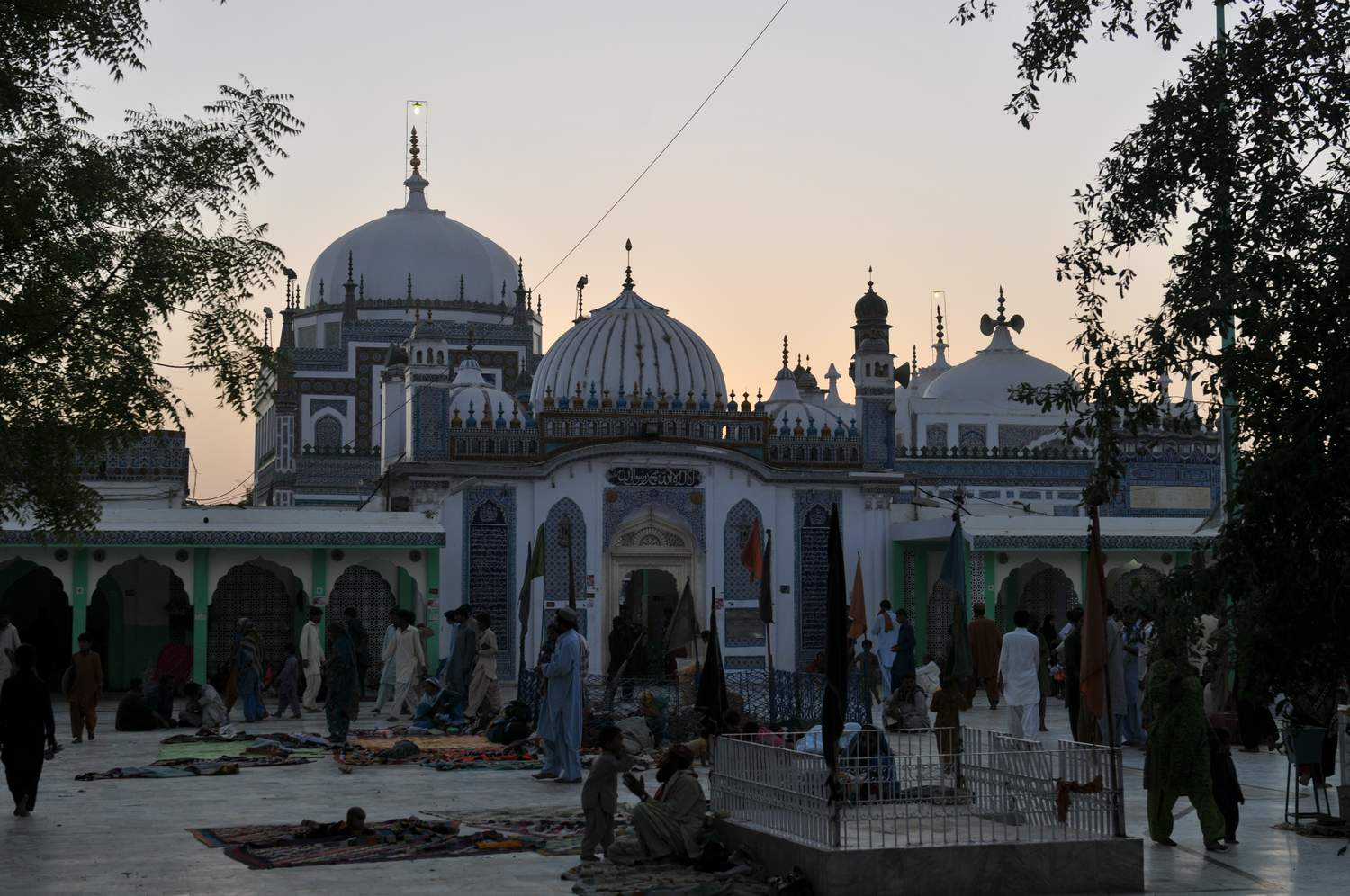 The mausoleum of Shah Abdul Latif Bhitai is a magnificent structure with a single white central dome surrounded by many small minarets with intricate patterns in blue, white, green and yellow. Even in the scorching heat we had to stop and admire its beauty.