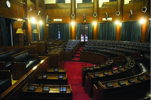 Climbing the steps to walk into the main area may make you feel as if you are a Roman (though the steps are not that steep) about to enter the senate hall. The instant you move inside the Sindh Assembly, after passing through metal detectors for security purposes, the vast hallway and the spacious corridors on right and left will impress you, more so because of the historic pictures that adorn the big walls on all sides. Ascending the first flight of stairs will bring you to a giant picture of Liaquat Ali Khan presenting the Pakistan flag before the Constituent Assembly of Pakistan on 11th August 1947. To its left is written in bold letters ‘Pakistan Resolution Passed By Sindh Legislative Assembly on 3rd March 1943 Moved By Mr G. M. Sayed.’ It clearly points to the historic merit of the site.